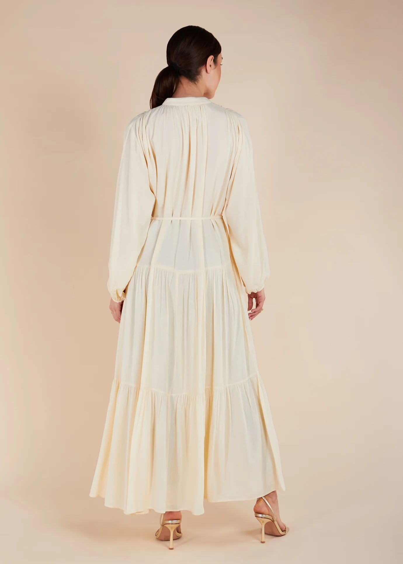 Made with a soft fabric in a pale cream colour, this dress features graceful, tiered layers and refined shell buttons, making it perfect for formal occasions and an elevated everyday style. Accessorise to complete the look.